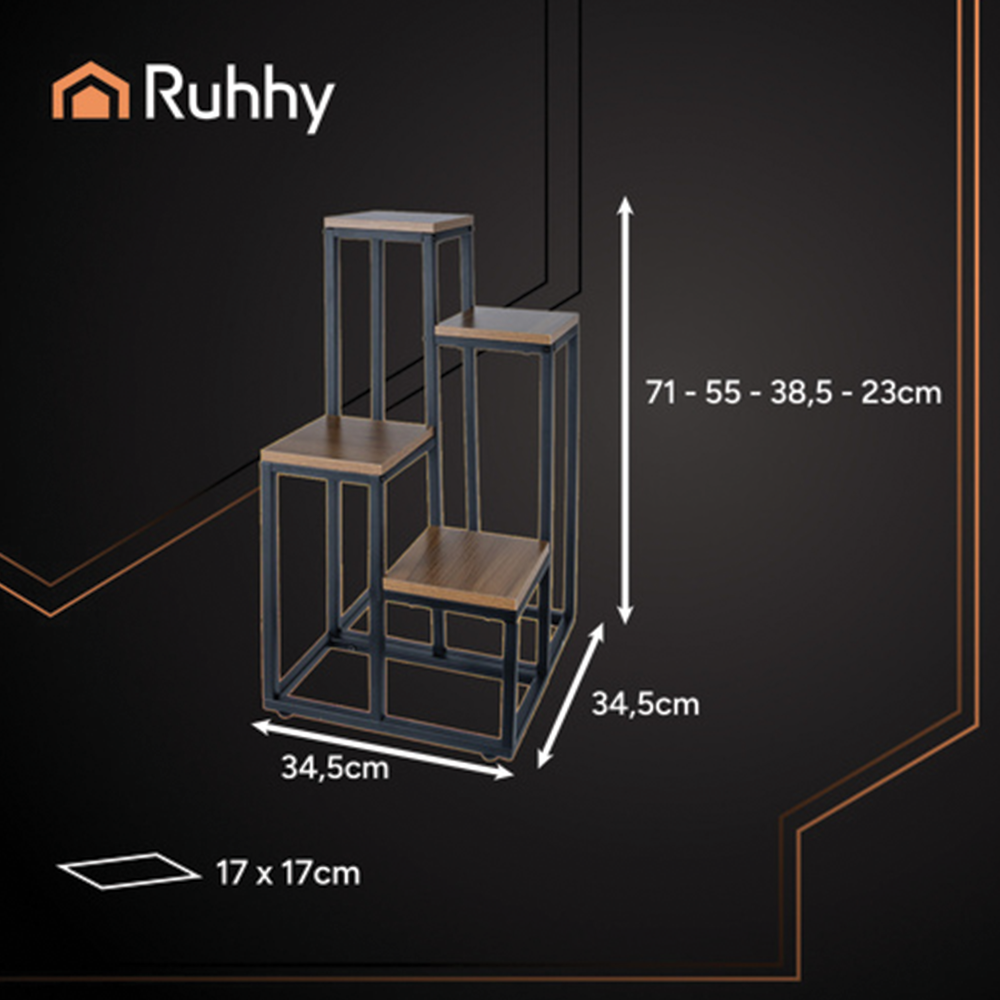 Stojan na květiny RUHHY je stylový a praktický doplněk do interiéru i na balkon. Čtyřpatrový loftový design umožňuje elegantně vystavit více rostlin na malém prostoru. Stabilní kovová konstrukce zajišťuje bezpečné umístění květin a minimalistický design se hodí do každého stylu. Stojan je vybaven vyrovnávacími nožičkami, které chrání podlahu před poškrábáním a zároveň umožňují stabilní umístění i na mírně nerovném povrchu. Montáž je snadná a rychlá – balení obsahuje veškeré potřebné prvky i návod.