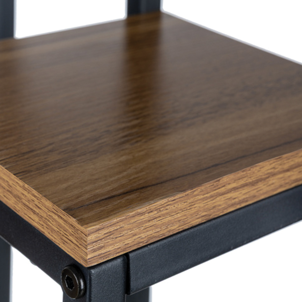 Moderní čtyřpatrový stojan na květiny kombinuje minimalistický loftový design s funkčností a odolností. Kovový rám zajišťuje stabilitu a nosnost až 50 kg, zatímco police z MDF desek v dekoru dřeva dodávají stojanu elegantní vzhled. Díky čtyřem úrovním můžete umístit více rostlin na menší plochu a vytvořit tak atraktivní zelený kout v domácnosti, kanceláři nebo na balkoně.