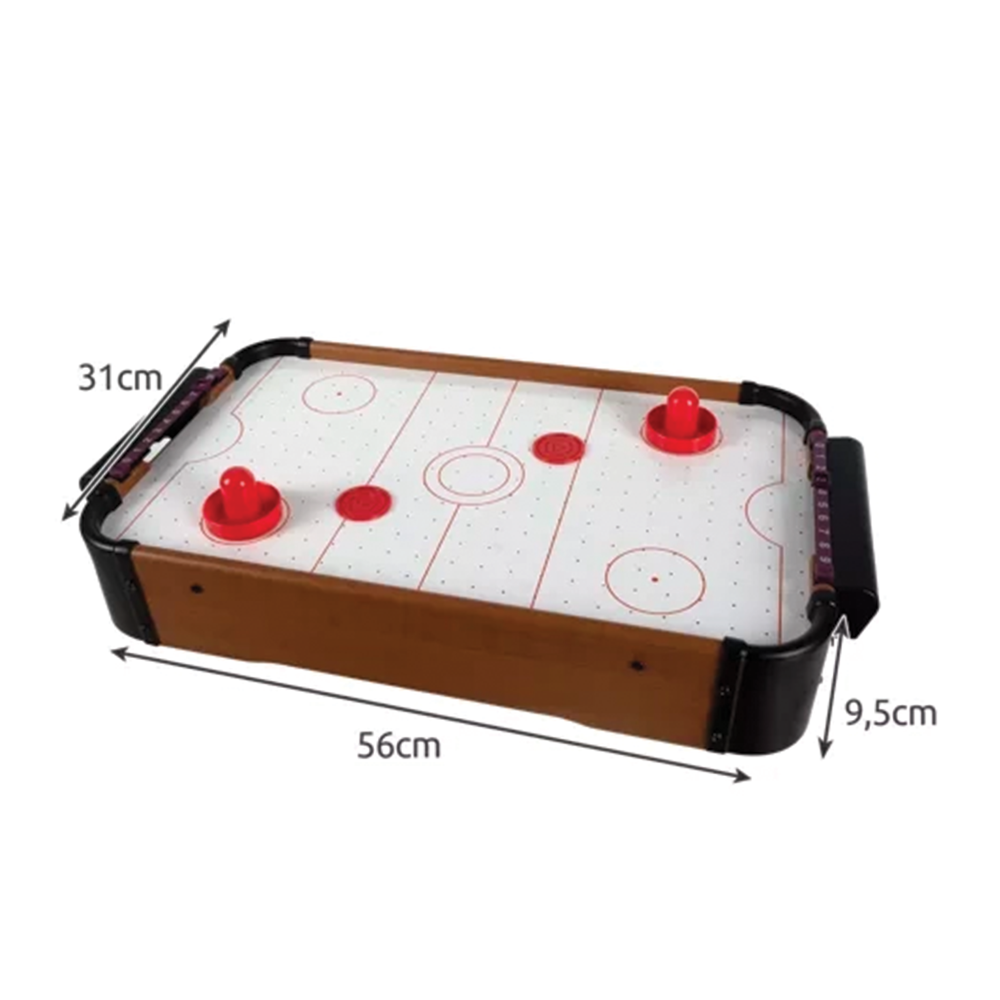 Užijte si napínavý zápas přímo u vás doma s tímto kompaktním stolním vzdušným hokejem. Stůl s integrovaným vzduchovým pohonem zajišťuje rychlý a plynulý pohyb puku, který vás okamžitě vtáhne do hry. Díky lehkému dřevěnému provedení je snadno přenosný, takže zábava může začít kdekoli – v dětském pokoji, na oslavě i na dovolené. Ideální volba pro trénink postřehu a zdravou soutěživost celé rodiny.