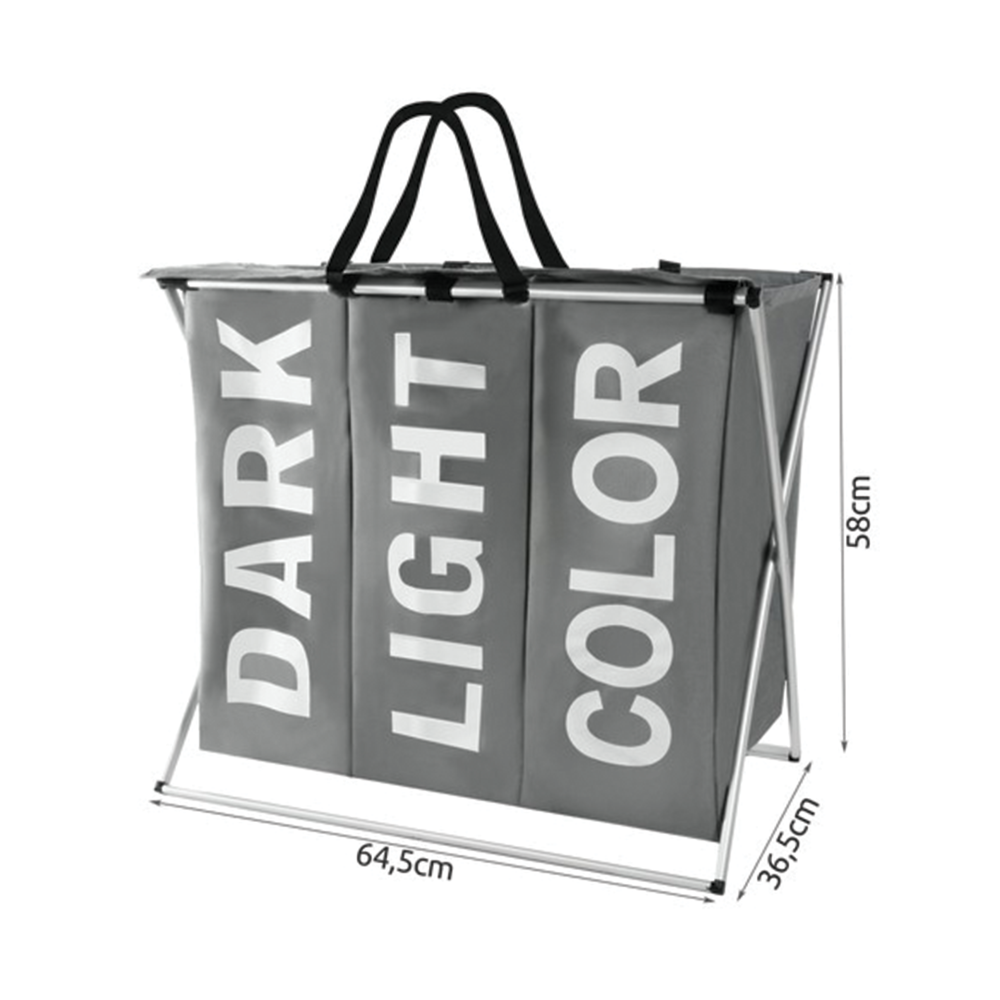 Trojitý koš na prádlo o objemu 130 litrů umožňuje praktické třídění světlého, tmavého i barevného oblečení už při jeho odkládání. Díky voděodolné vnitřní vrstvě, lehké konstrukci a pevnému rámu je ideálním řešením pro každou domácnost, která chce mít prádlo přehledně uspořádané a snadno přenosné.