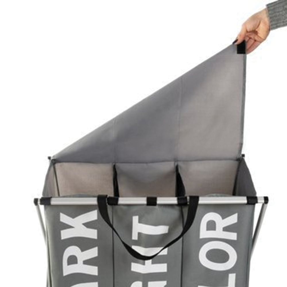 Trojitý koš na prádlo je moderní a funkční pomocník, který výrazně usnadňuje organizaci špinavého oblečení v domácnosti. Díky třem samostatným přihrádkám lze prádlo rovnou třídit podle barev, což šetří čas při praní a pomáhá udržovat pořádek. Vnitřní část koše je potažena voděodolným materiálem, takže do něj můžete bez obav ukládat i vlhké prádlo bez rizika prosáknutí vody ven. Pevný rám z hliníkové slitiny zajišťuje stabilitu, zatímco lehká konstrukce umožňuje snadnou manipulaci. Koš je vybaven dvěma praktickými madly pro pohodlné přenášení k pračce. Díky skládací konstrukci jej lze snadno uložit, když není používán. Kromě prádla poslouží i jako organizér na hračky, knihy nebo jiné domácí potřeby. Moderní šedobílé provedení zapadne do každého interiéru.