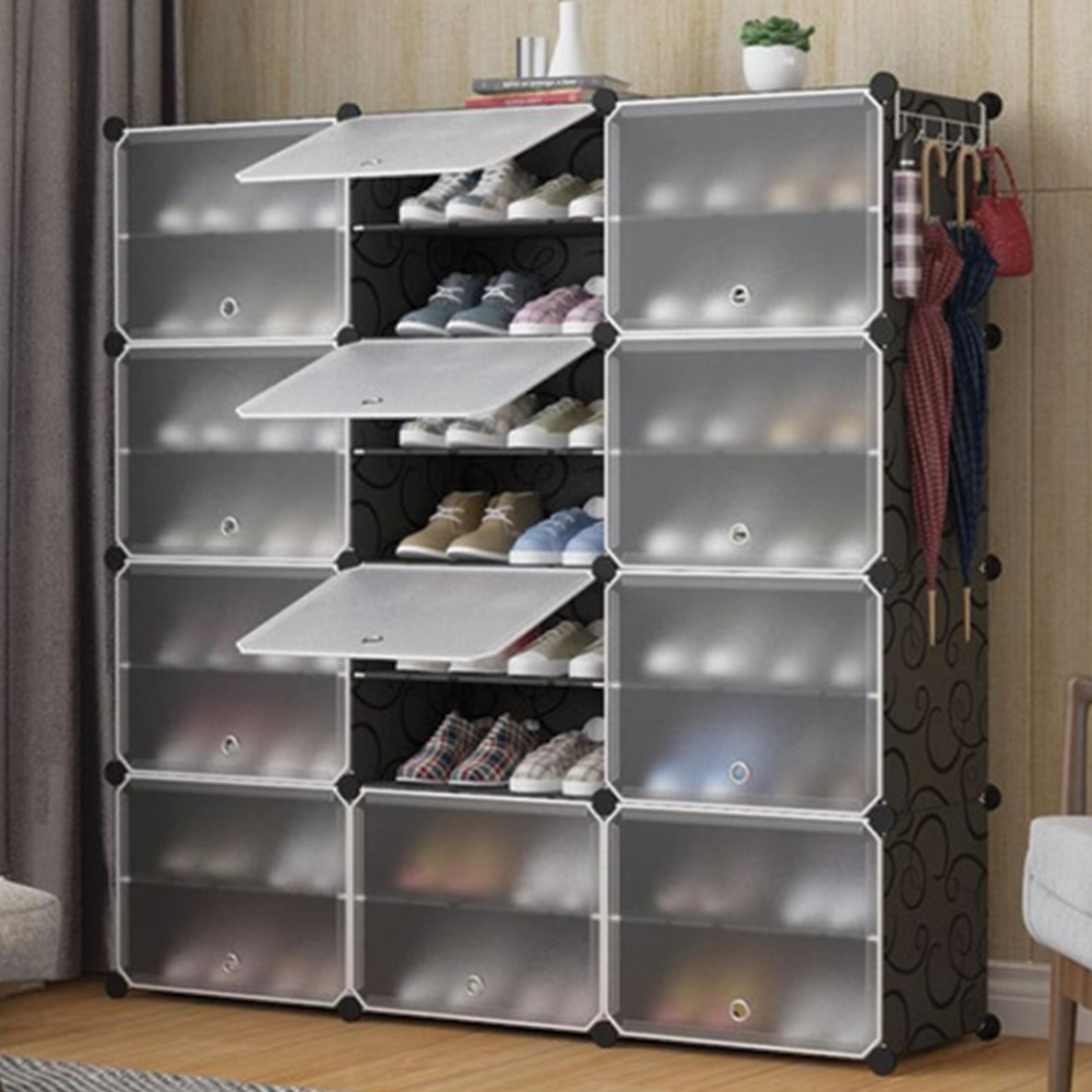 Variabilní regálový systém na boty je navržen tak, aby maximálně šetřil prostor a zároveň poskytoval velkou úložnou kapacitu. Díky modulární konstrukci si můžete uspořádat jednotlivé segmenty přesně podle svých potřeb a prostoru – a v případě potřeby kdykoliv přidat další moduly. Pevná a stabilní konstrukce z odolných materiálů zajišťuje bezpečné uložení obuvi pro každodenní používání. Šest polic pojme až 12 párů bot, přičemž kompaktní rozměry umožňují umístění i do menších bytů. Velkou výhodou jsou průhledná otevírací dvířka, která chrání boty před prachem a nečistotami, a zároveň umožňují okamžitý přehled o obsahu bez nutnosti otevírání každého modulu. Součástí sestavy je také věšák, ideální na bundy, šály, kabelky nebo čepice – vše budete mít přehledně na jednom místě. Montáž je extrémně jednoduchá, intuitivní a bez potřeby nářadí. V balení je dokonce i malé kladívko pro ještě snadnější sestavení.