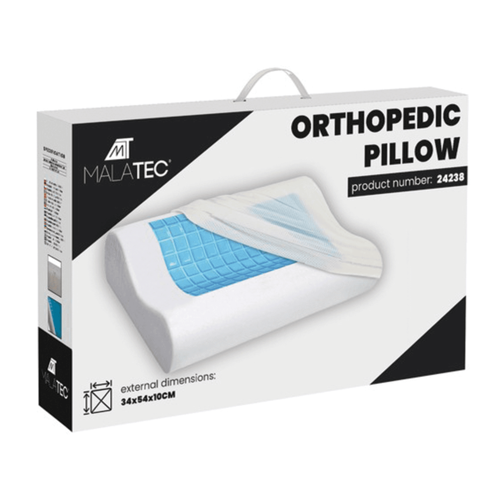 Ortopedický polštář je vyroben z kvalitní paměťové pěny se speciální chladicí gelovou vložkou, která zajišťuje pohodlí, správnou oporu krku a optimální regulaci teploty během spánku. Profilovaný tvar pomáhá udržet přirozené zakřivení páteře a podporuje zdravou polohu hlavy i ramen. Je ideální pro klidný a kvalitní odpočinek.