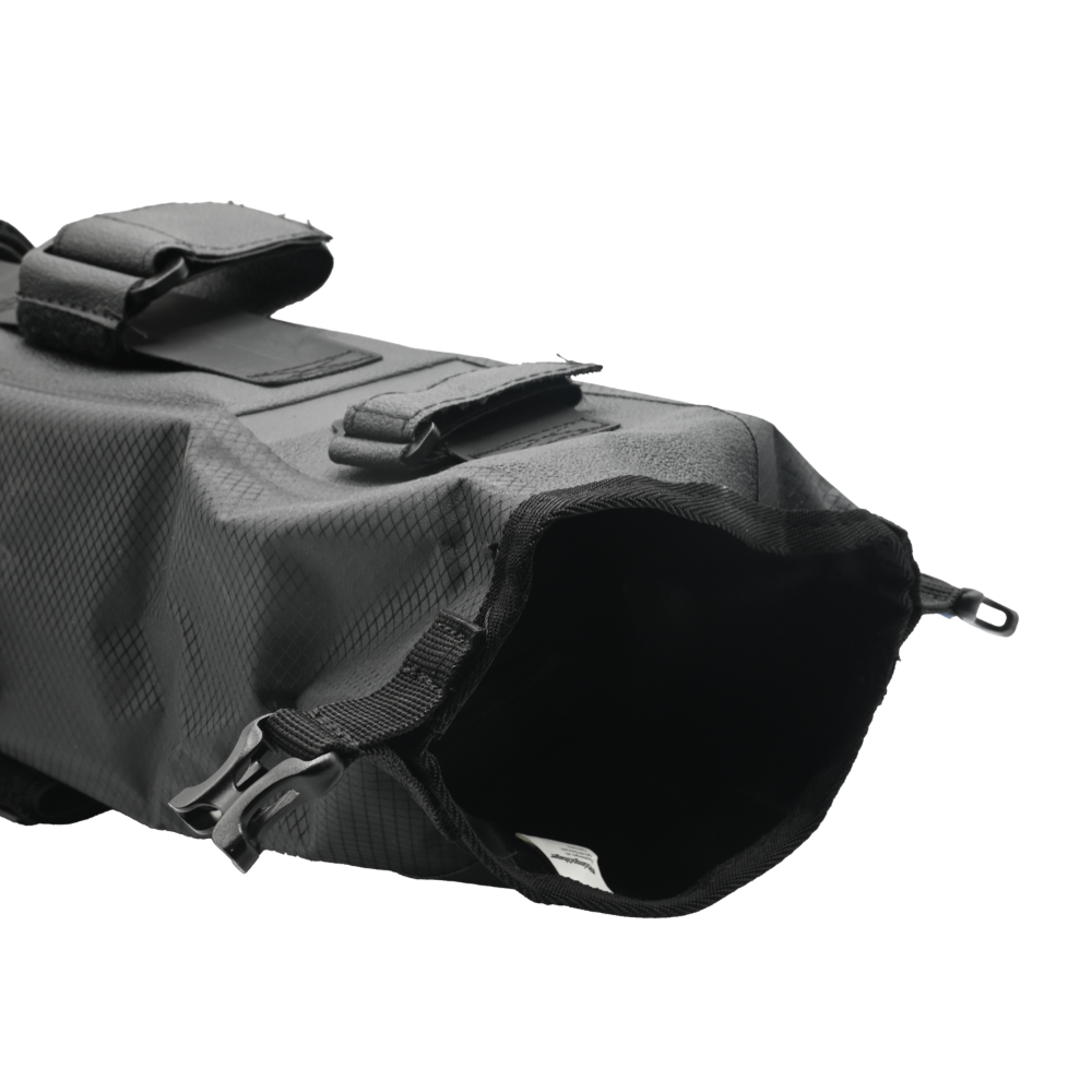 Stabilní uchycení: systém silných suchých zipů zajišťuje, že brašna pevně drží na svém místě.