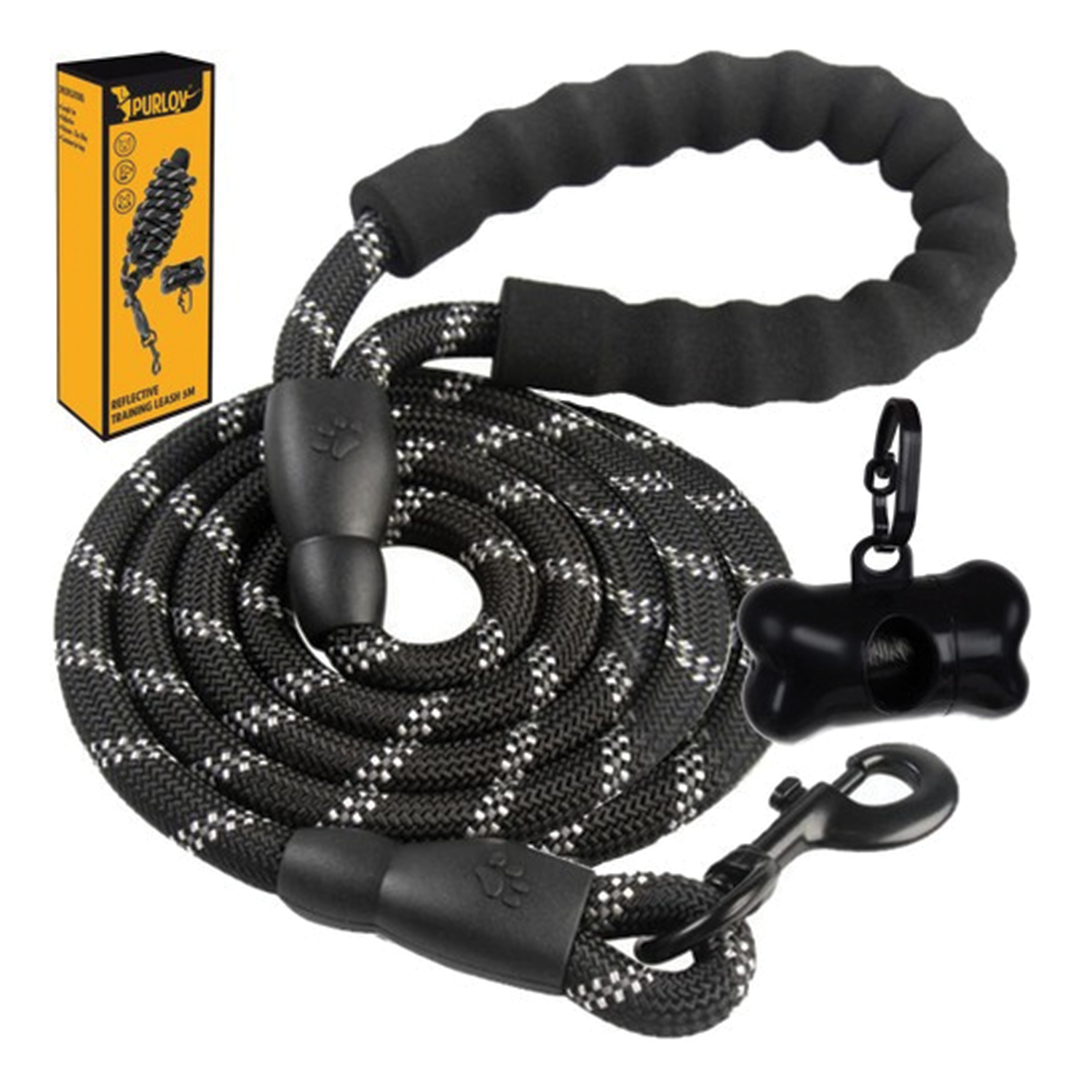 Vodítko pro psy reflexní kulaté 5 m černá + pouzdro na sáčky