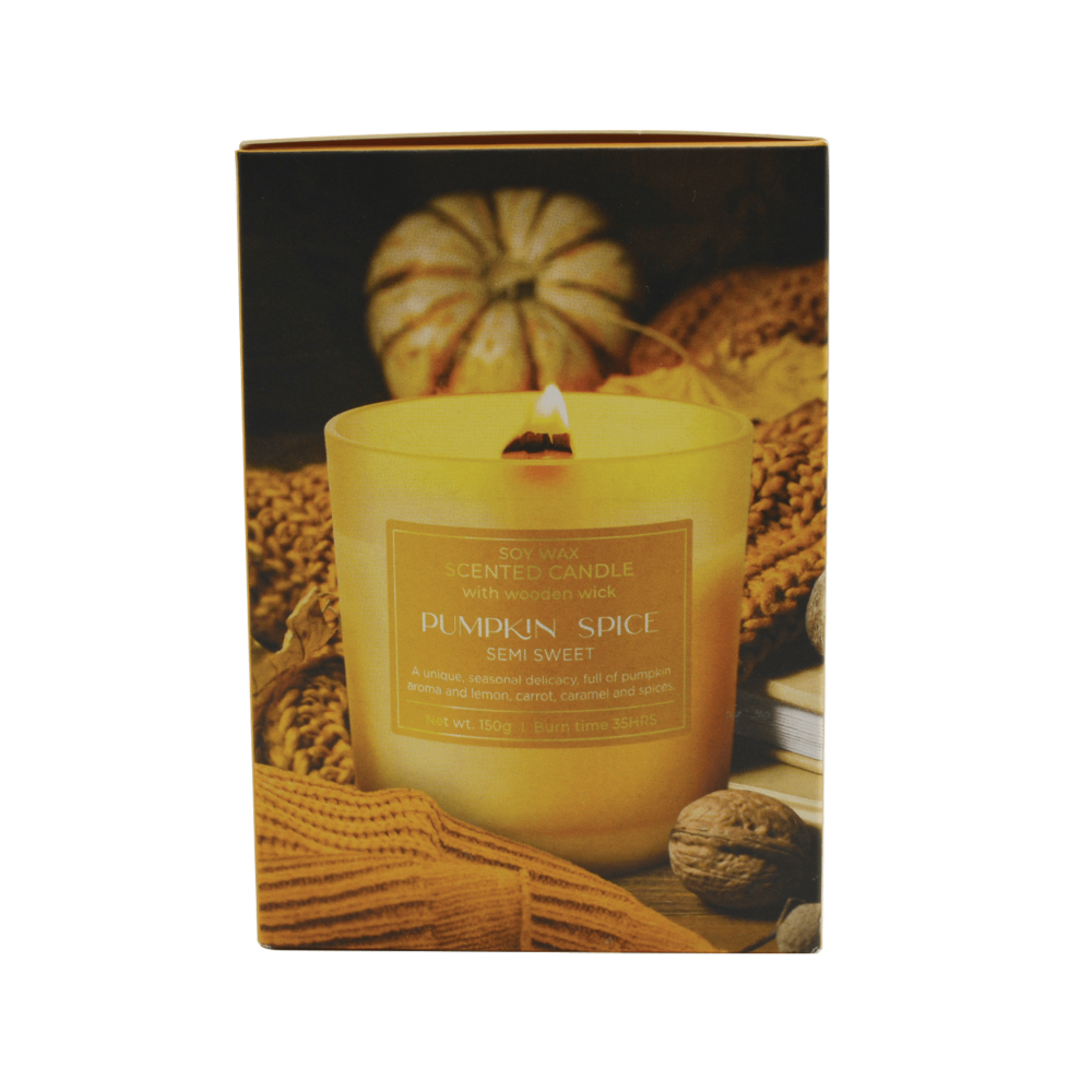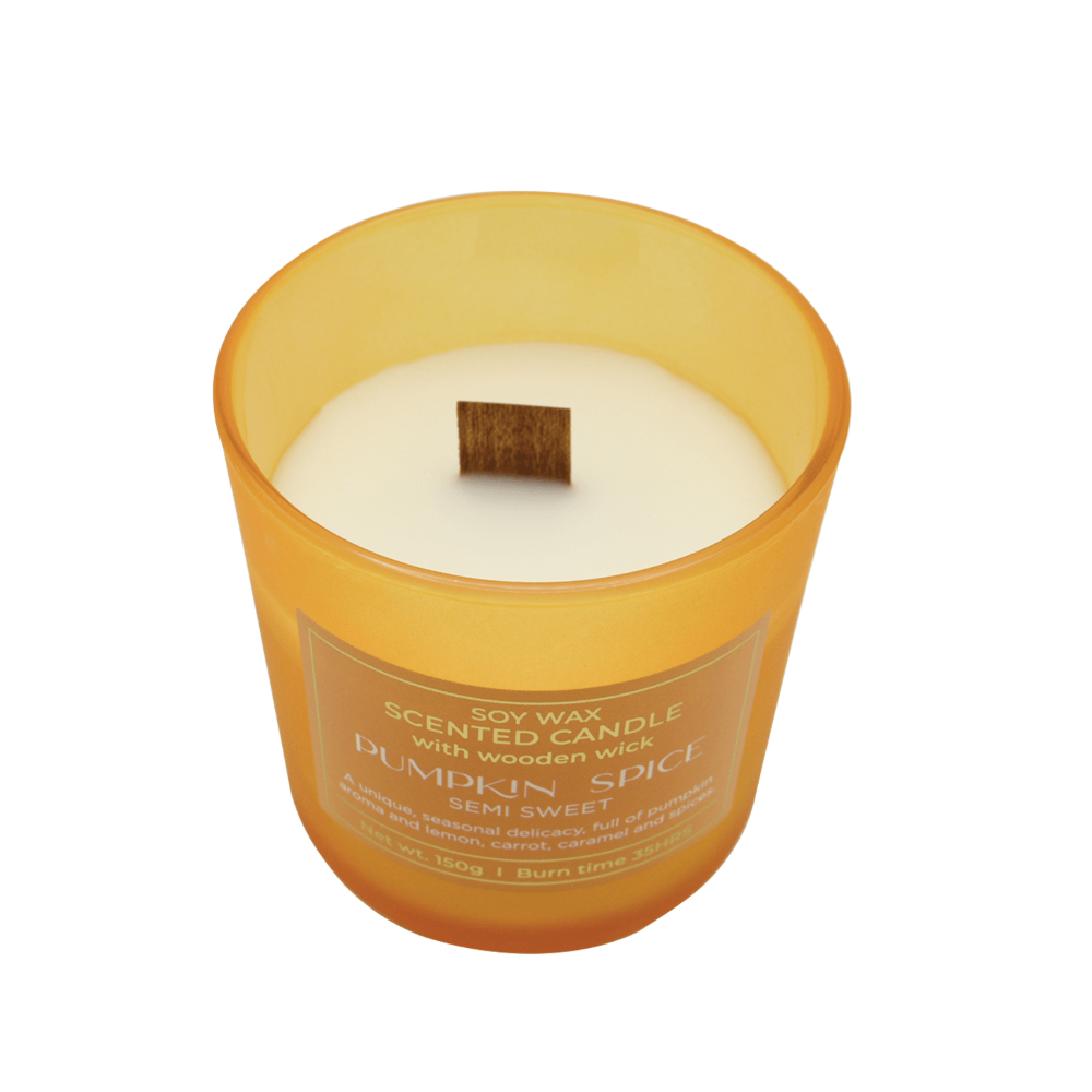 Vonná sójová svíčka s dřevěným knotem - Dýňový koření, Semi-Sweet