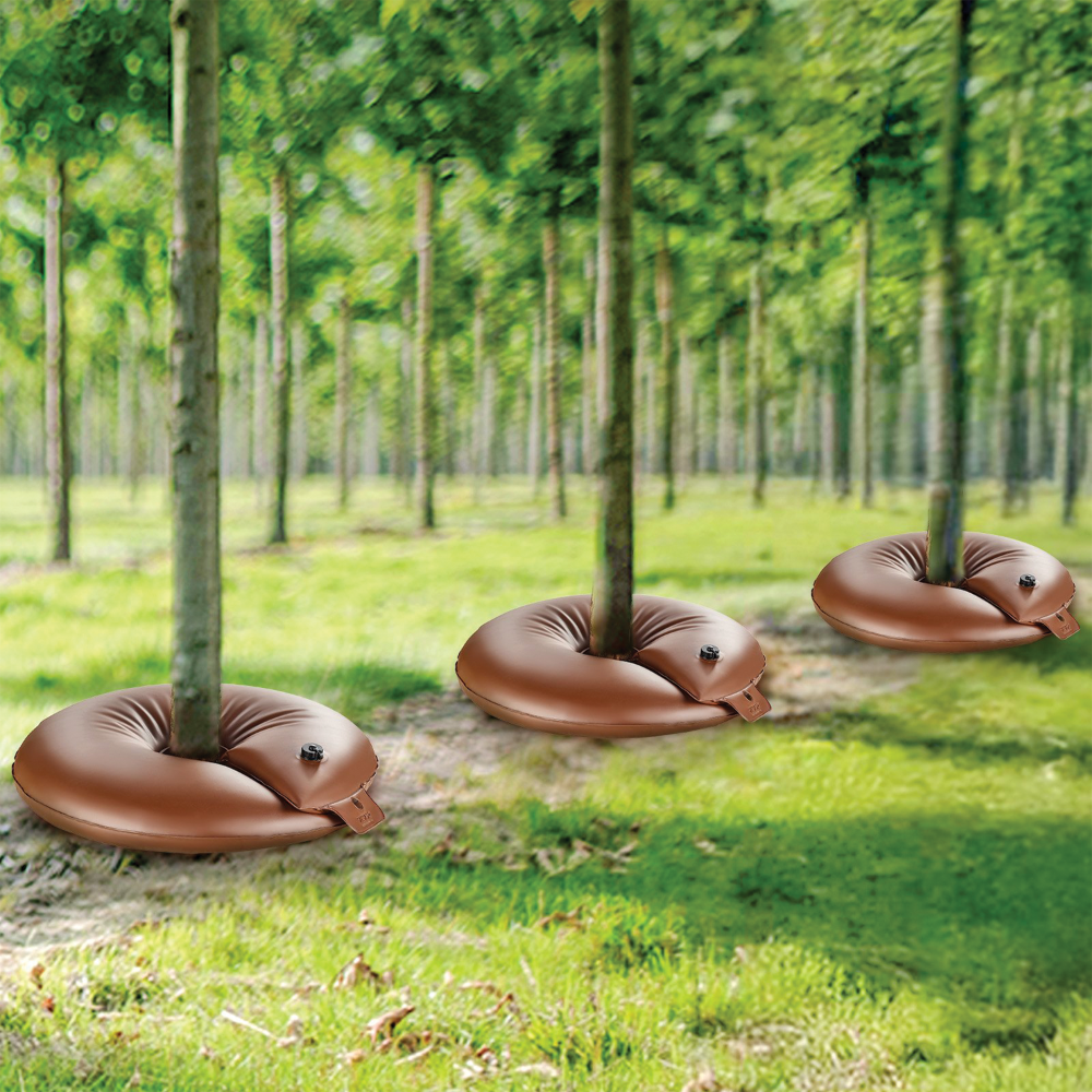 Zavlažovací kruhy ke stromům jsou navrženy pro efektivní hluboké zavlažování bez zbytečného plýtvání vodou. Každý vak pojme až 60,6 litru vody, která se postupně uvolňuje po dobu 6 až 9 hodin přímo ke kořenovému systému stromu. Díky tomu dochází k lepšímu zakořenění, zdravějšímu růstu a vyšší odolnosti proti suchu. Vaky jsou vyrobeny z pevného PVC materiálu o vysoké gramáži, který je odolný vůči povětrnostním vlivům, protržení i mechanickému namáhání. Bez problémů snesou kontakt s větvemi i tlak při plném naplnění. Univerzální konstrukce umožňuje použití jak u mladých stromků, tak u dospělých stromů s průměrem kmene až 140 mm. Šroubovací plnicí otvor usnadňuje rychlé doplnění vody běžnou zahradní hadicí, zatímco kapkový ventil zajišťuje rovnoměrné a plynulé vypouštění bez ucpávání. Zavlažovací vaky výrazně snižují potřebu častého ručního zalévání a pomáhají šetřit vodní zdroje. Jsou ideálním řešením pro zahrady, sady, parky i nově vysazené stromy ve městech.