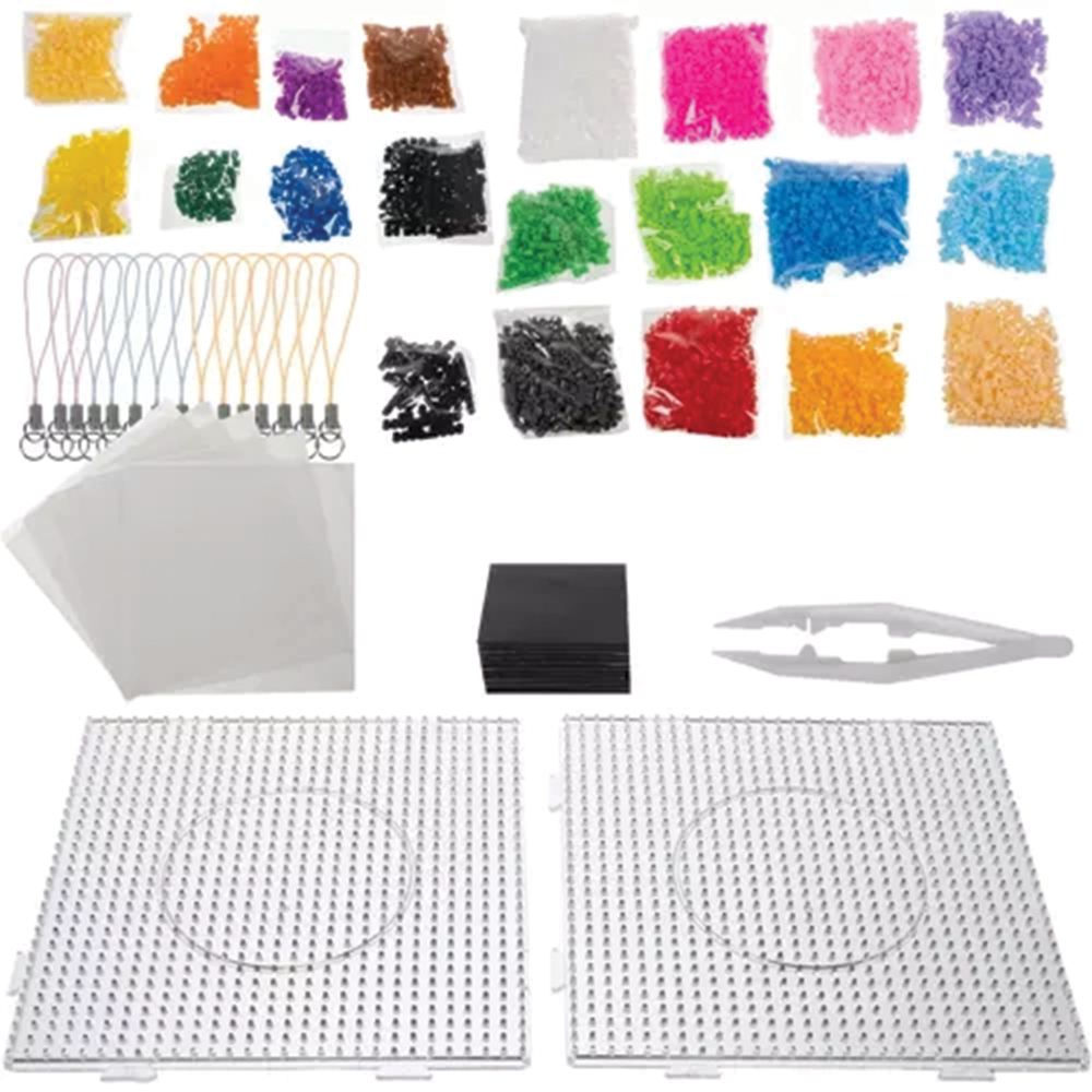 Sada nažehlovacích korálků je ideálním nástrojem pro kreativní tvoření a rozvoj fantazie každého dítěte. Tato rozsáhlá sada obsahuje až 6500 korálků ve 20 různých barvách: bílá, černá, hnědá, 2 odstíny žluté, 2 oranžové, béžová, 2 odstíny růžové, 2 odstíny fialové, červená, šedá, 3 odstíny zelené a 3 odstíny modré. Děti mohou vytvářet obrázky, figurky i 3D postavy podle vzorů nebo vlastní fantazie. Sada obsahuje dvě čtvercové formy a 15 hotových vzorů zvířátek, což umožňuje dětem aranžovat a hrát si s korálky na mnoho způsobů. Kreativní sada zahrnuje také magnety a kroužky na klíče, díky čemuž je možné vyrábět magnetky a klíčenky. Hra s korálky podporuje rozvoj jemné motoriky, koncentrace, týmovou spolupráci a kreativitu dítěte.