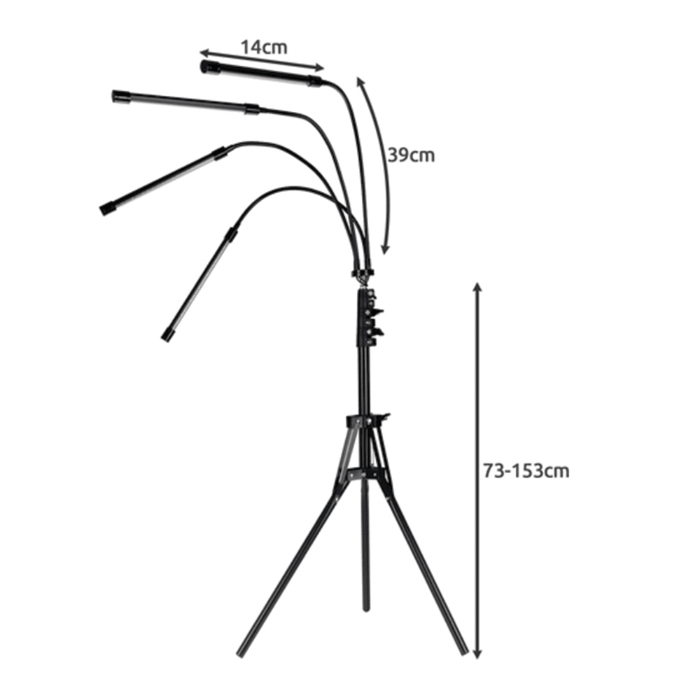 LED lampička na pěstování rostlin se stativem a čtyřmi světelnými panely je vybavena 80 diodami s červeným a modrým spektrem, které podporují fotosyntézu, růst i kvetení rostlin. Nabízí časovač, regulaci intenzity světla a flexibilní ramena pro přesné nasměrování osvětlení. Je ideální pro pokojové rostliny, bylinky i pěstování ve skleníku.