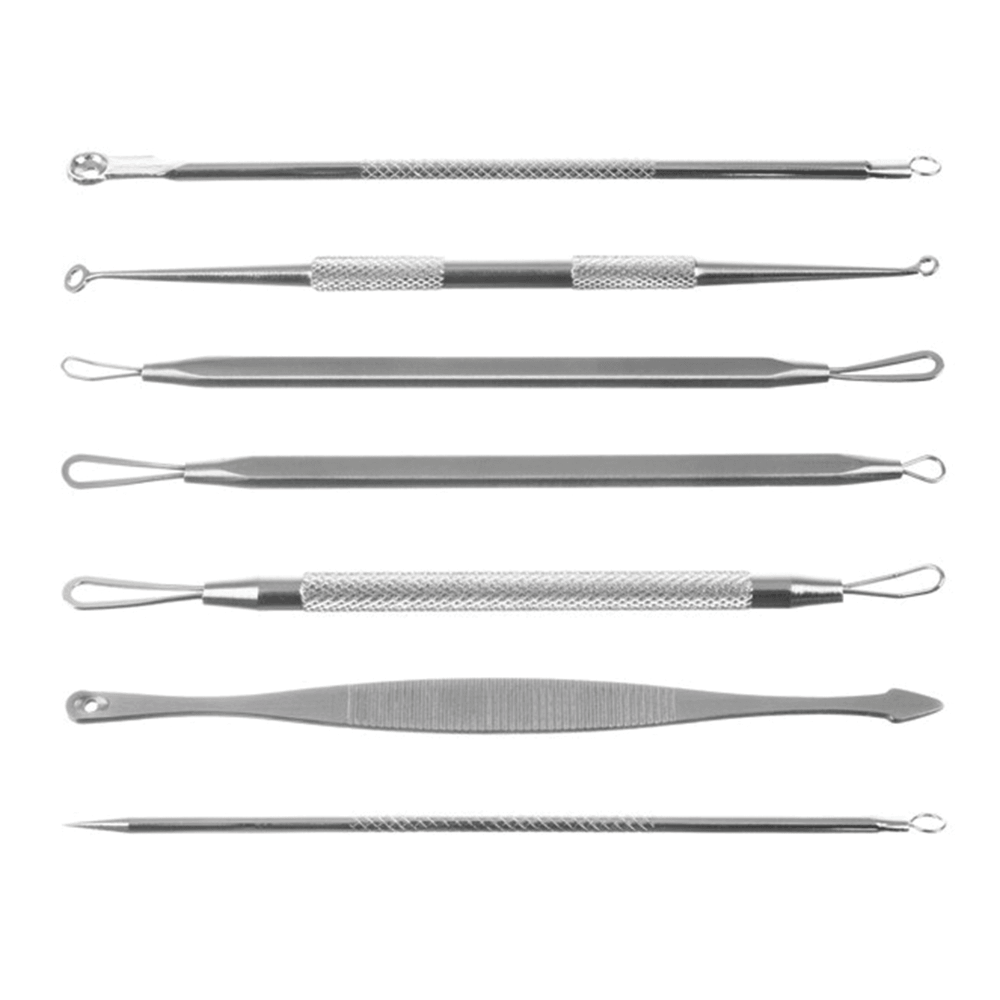 Sada 7 nástrojů na odstranění akné je vyrobena z hygienické nerezové oceli, která umožňuje bezpečné a šetrné čištění pleti bez poškození pokožky. Oboustranné smyčky jsou navrženy pro efektivní odstranění černých teček, pupínků i nečistot z těžko dostupných míst. Součástí je elegantní pouzdro pro snadné skladování a přenášení.