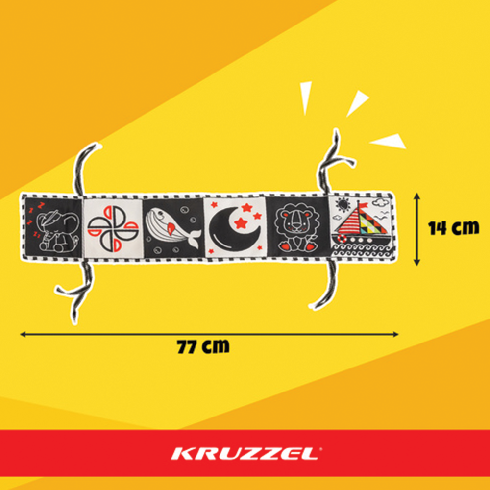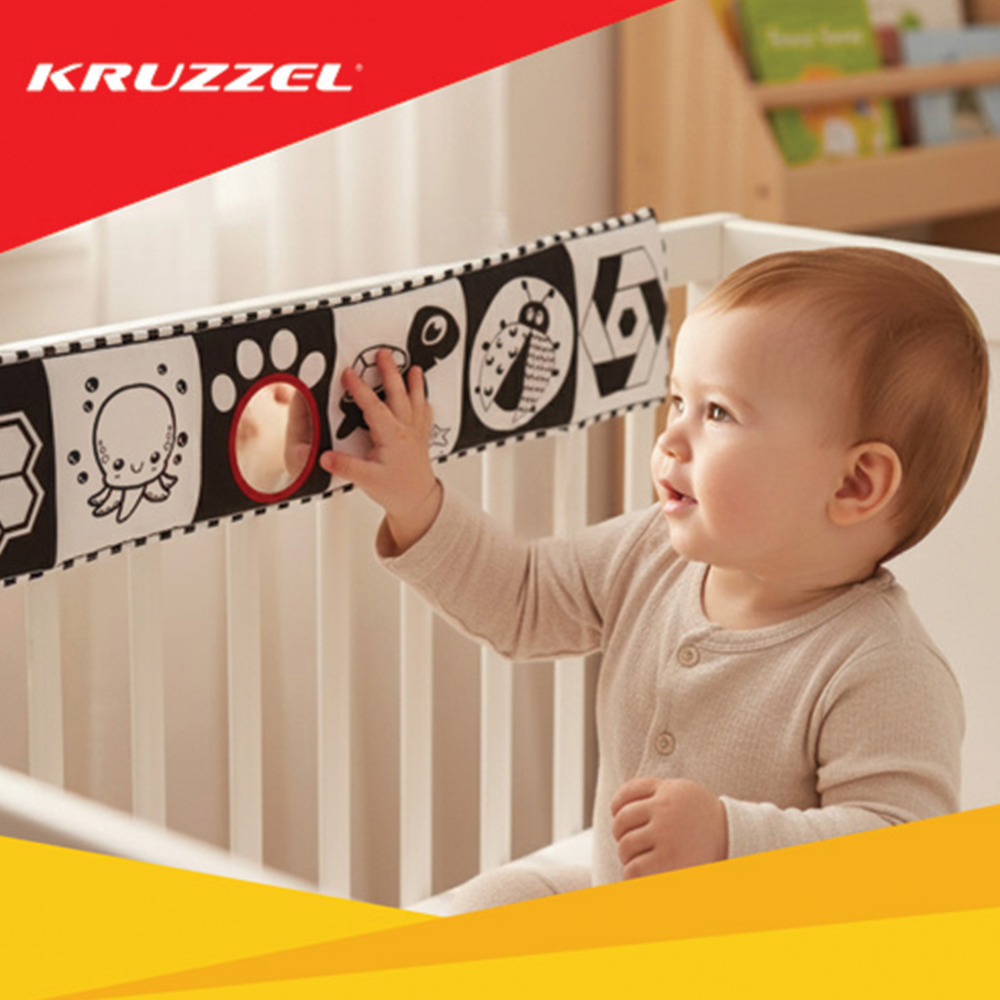 Vizuální stimulace: Kontrastní potisky a barvy efektivně stimulují zrak novorozenců a učí je rozpoznávat barvy a první sekvence.