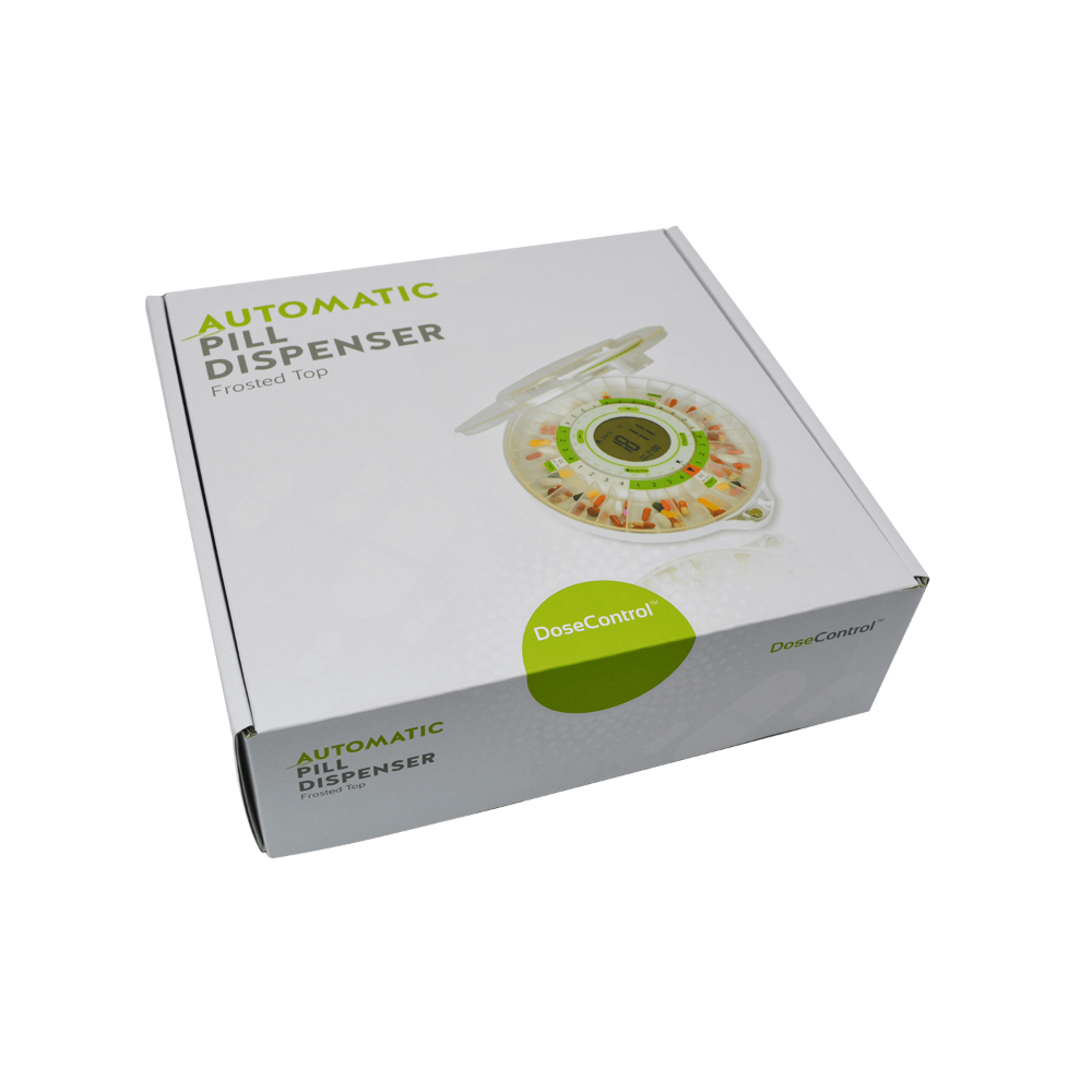 Otočný, odnímatelný zásobník (karusel): Obsahuje 28 přihrádek, z nichž každá pojme až 35 tablet velikosti aspirinu. Zásobník lze vyjmout pro účely snadné přípravy léků rodinným příslušníkem.